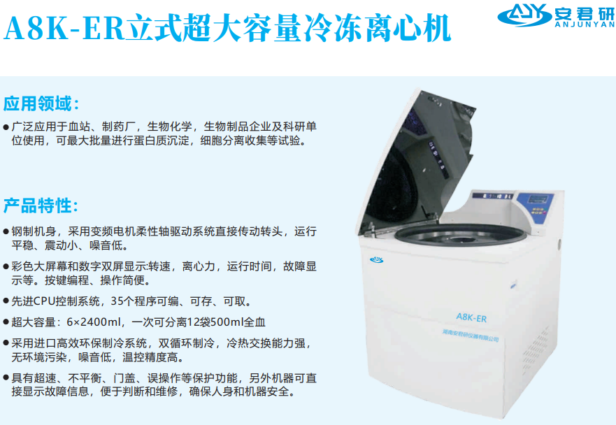 A 8 K - E R 立 式 超 大 容 量 冷 冻 离 心 机