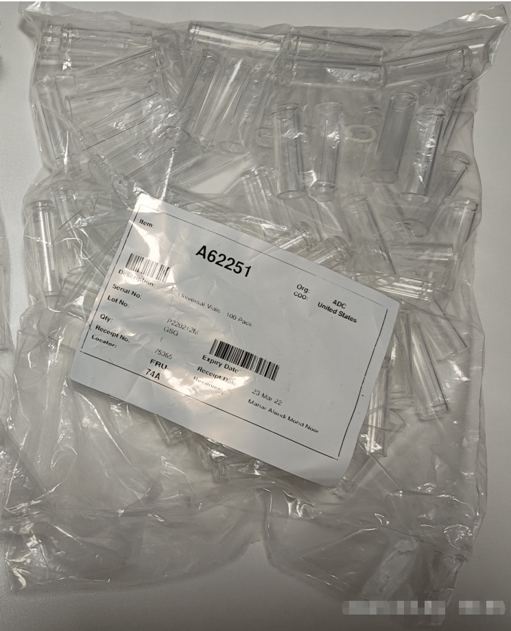 产品简介:Universal vials are used in combination with universal caps (Part Number A62250) and can accommodate buffers/samples and retain micro-vials. These polymethylpentene vials are precision manufactured and have been compatibility tested with commonly used CE reagents.Universal vials are designed for use only with CESI 8000,PA800 Enhanced or PA 800 plus instruments and should not be reused.、